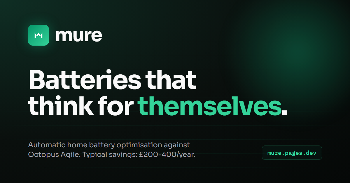 Mure reads these prices every day and optimises your battery automatically.